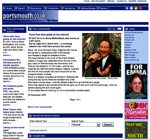 September 2005 in The News, Portsmouth, which ran an above the fold headline on